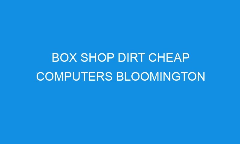 Box Shop Dirt Cheap Computers in Bloomington, MN — Map, Phone Number, Reviews, Photos and Video Profile for Bloomington MN Box Shop Dirt Cheap Computers. Box Shop …